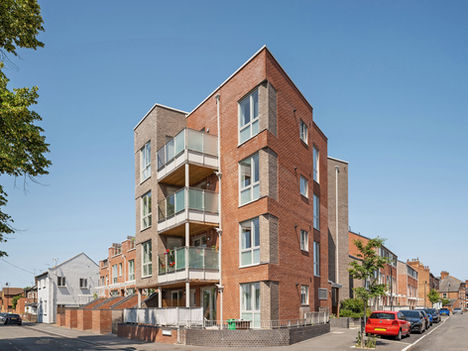 This development comprises 16 one-bedroom flats designed for a local housing association, located on the site of a former NHS Health Centre. Arranged over three floors, the flats are accessed via semi-external corridors positioned behind three large circular mesh panels, which provide both visual interest and filtered light.